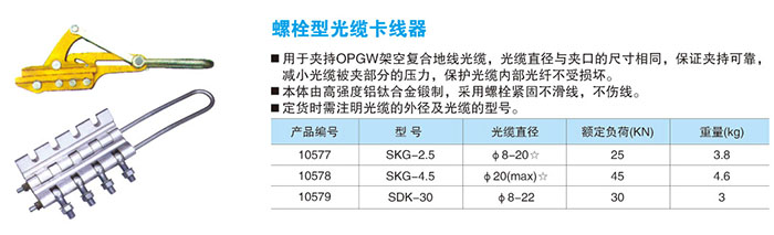 产品名称: 螺栓型光缆卡线器